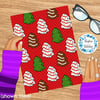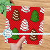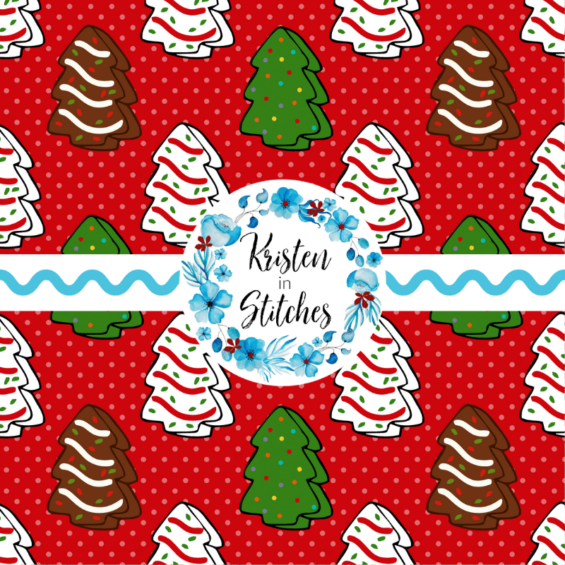 It's Debbie cake season! Frosted Christmas tree snack cakes on red.