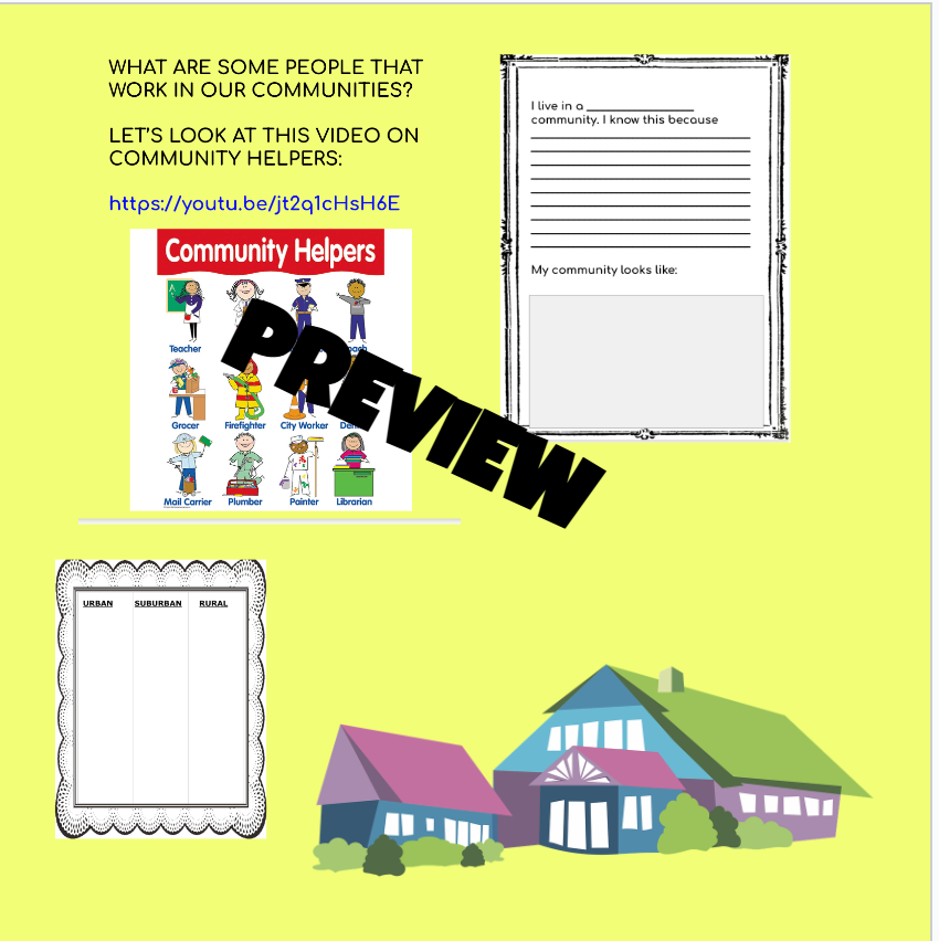 Links to videos help students answer questions about their own communities, what kind of helpers there are and what they would like to be in their community when they grow up.