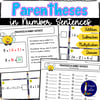 Total of 40 task cards with a task card recording sheet, answer key, and student handout on how to solve number sentences with parentheses.