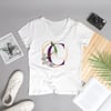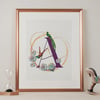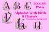Stunning Alphabet with a gold circle border adorned with beautiful birds and flowers.