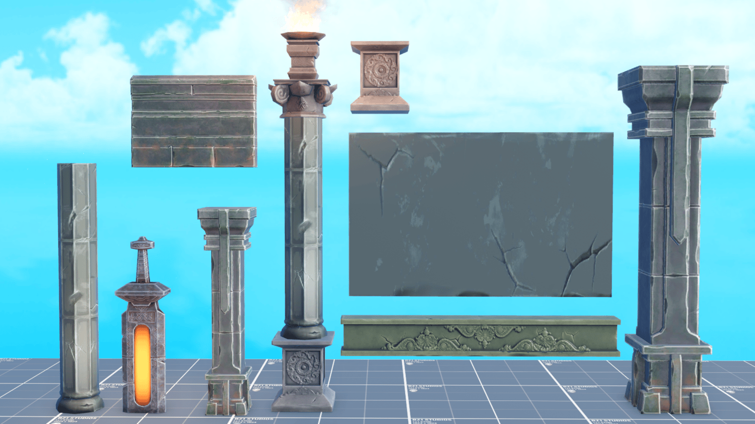 Ideal for developers looking to enhance and populate existing environments with stylized assets and detail. good for temples, ruins, Leaderboards or other fantasy scenes.