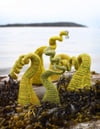 Each tentacle fits in the palm of your hand and takes only a few hours to knit. The knitting is mostly stockinette worked in the round with just a few carefully placed purl stitches and decreases to give it texture and shape.