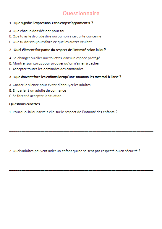 - Un cadre clair et rassurant : on parle de sécurité, sans entrer dans des détails intimes