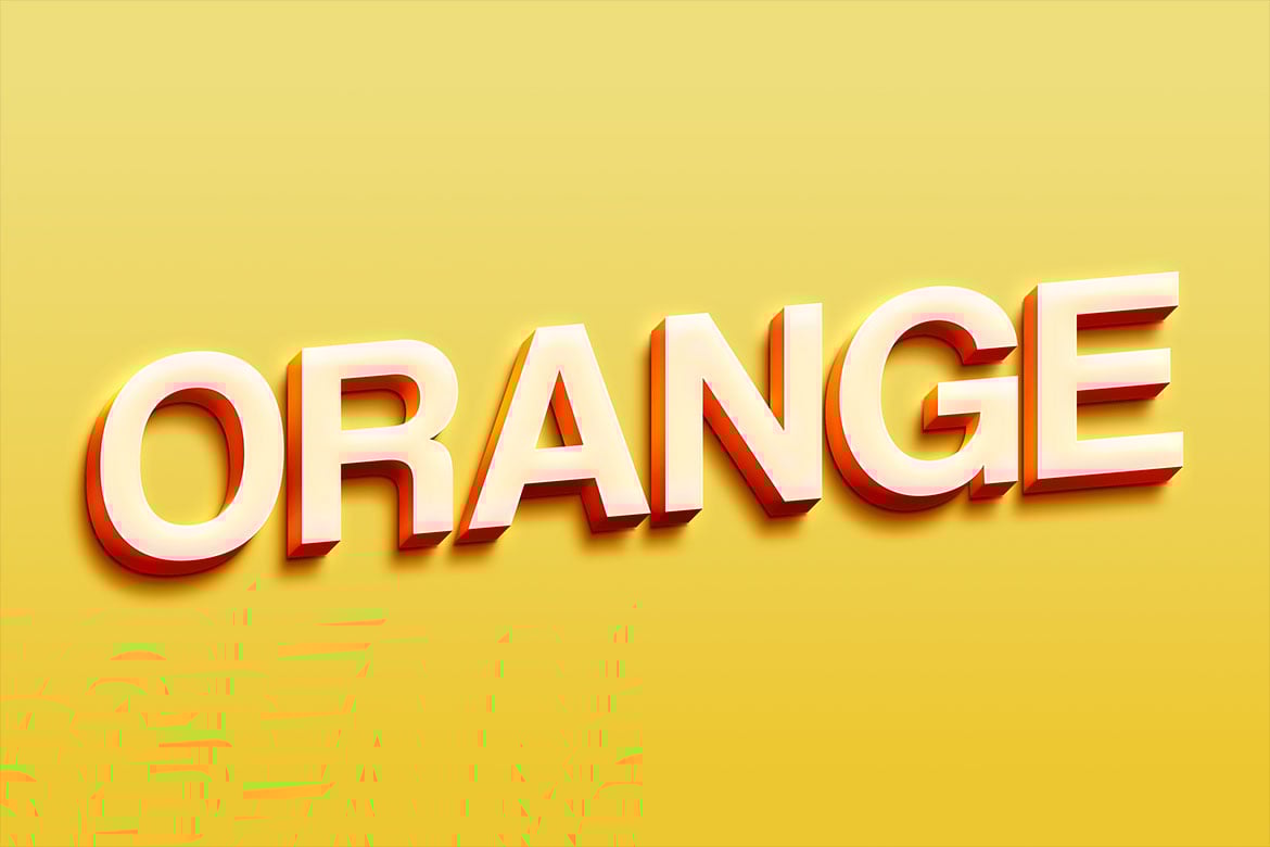 Features a bold, three-dimensional effect with a soft, creamy yellow color on the front face and a vivid orange-red shading on the sides. This combination creates a strong, uplifting contrast that makes the letters appear as if they are popping out from the background.