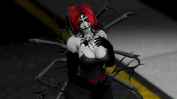 corset/spider dress/bikini/pins/pants/sleeves/dress/heels/bodysuit/dress