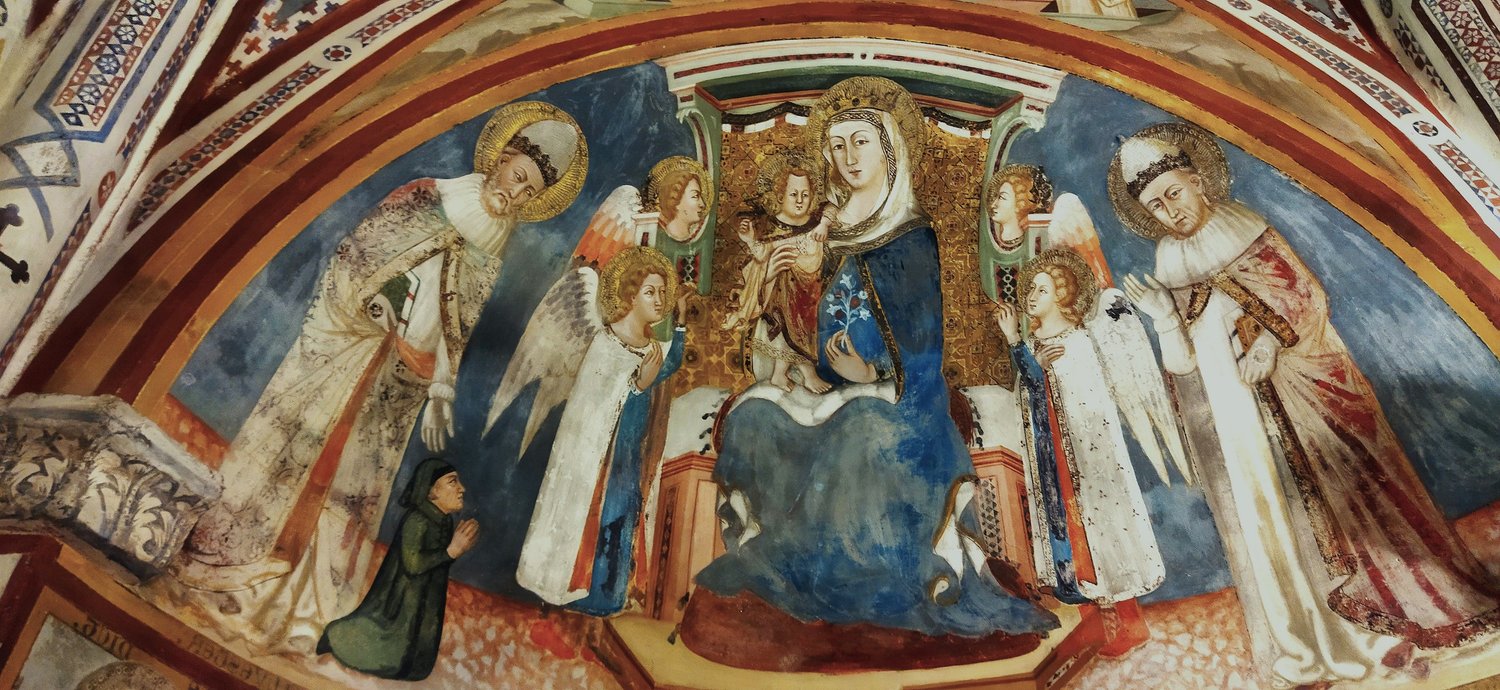 A hardbound notebook featuring a detail from the 14th century Maestà at the famous monastery of San Benedetto (Sacro Speco) near Subiaco.