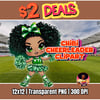This character is captured in a powerful pose, full of energy and spirit. Her beautiful, dark green curly hair is styled with a large striped bow, perfectly matching her glittery uniform and sneakers. This is the ideal cute Black girl sports clipart for making custom team apparel, ensuring your designs look vibrant and full of life.