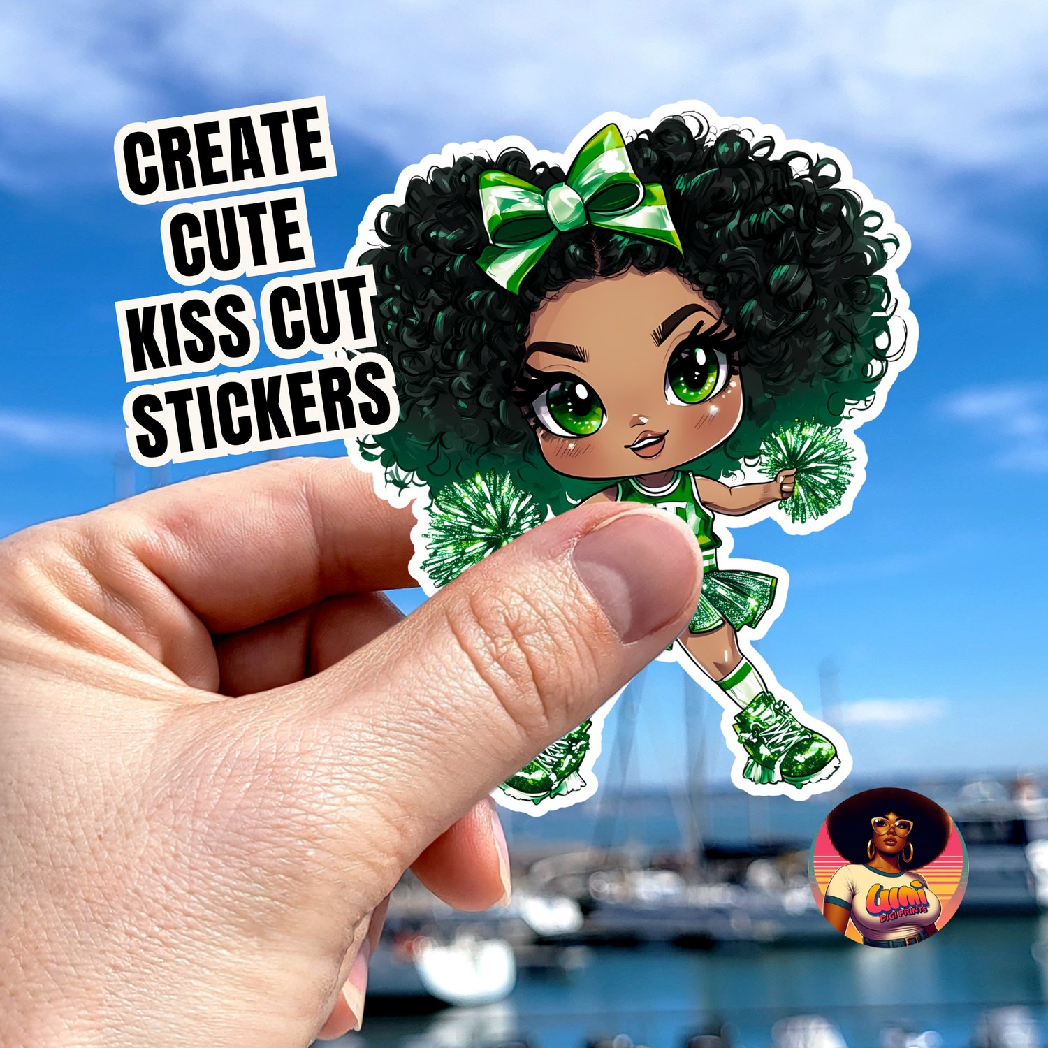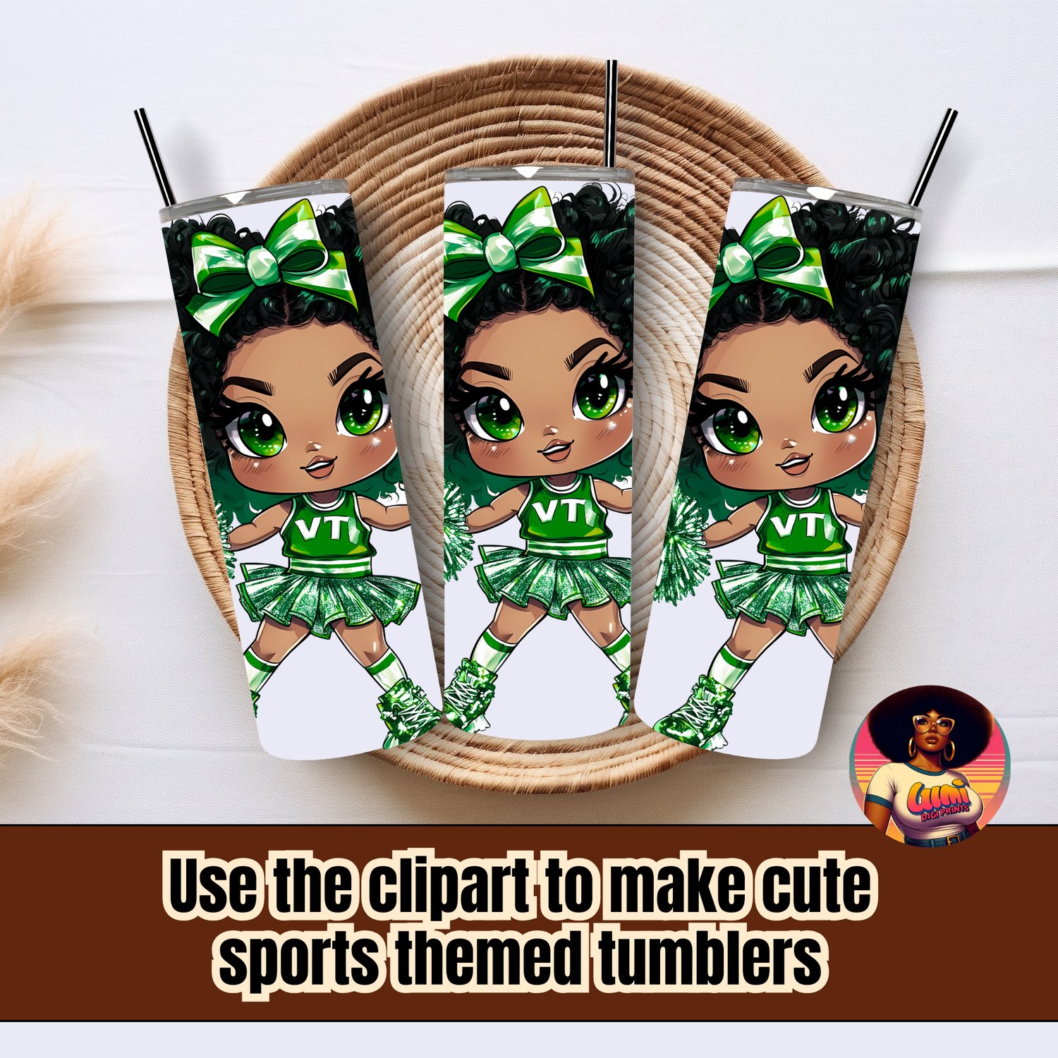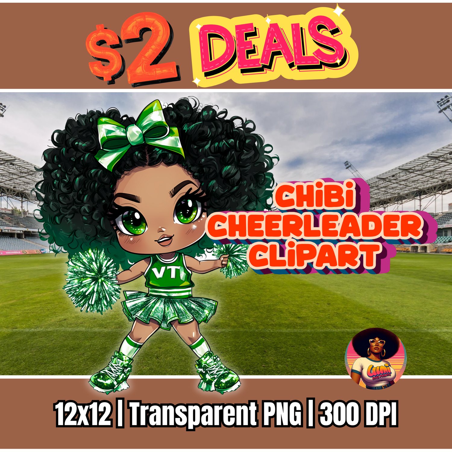 Show your ultimate team pride with this stunning chibi cheerleader girl in a sparkling green uniform. This high-quality digital graphic is the perfect asset for any crafter, parent, or coach whose team colors are green and white. She's ready to bring a winning attitude to all your creative projects!