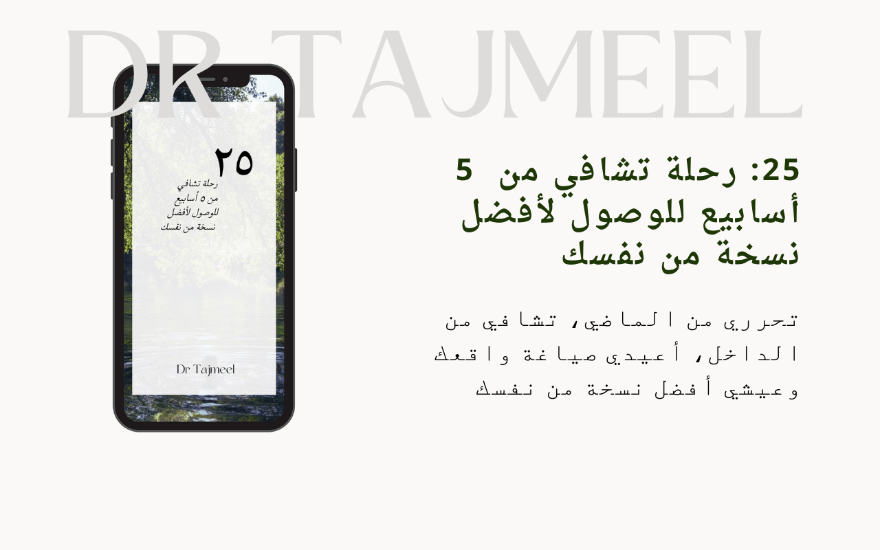 هل أنت مستعدة لتغيير حياتك لتصبحي أفضل نسخة من نفسك؟ 25: رحلة تشافي من 5 أسابيع للوصول لأفضل نسخة من نفسك هي رحلة إرشادية مصممة لمساعدتك على التشافي والنمو واكتشاف قوتك الداخلية. من خلال مسار واضح ومنظم، ستغوصين عميقًا في التأمل الذاتي والشفاء والنمو الشخصي