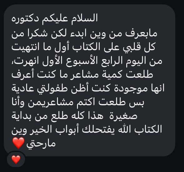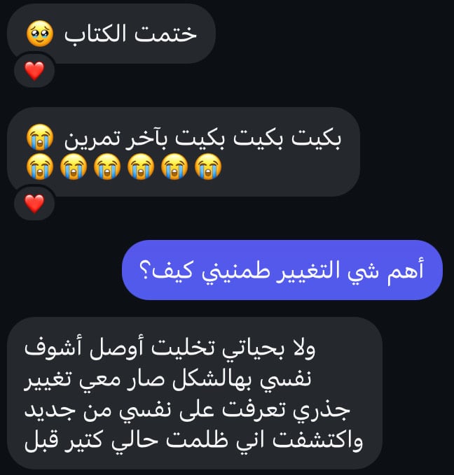 يمكن أن تثير هذه الرحلة مشاعر عميقة، وهذا أمر طبيعي. إذا شعرت بالحيرة، خذي استراحة وعودي عندما تكونين مستعدة. تذكري أن النمو الشخصي هو رحلة وليس سباقًا. يمكنك أيضًا التواصل مع فريق دعم المؤلفة للحصول على الإرشادات