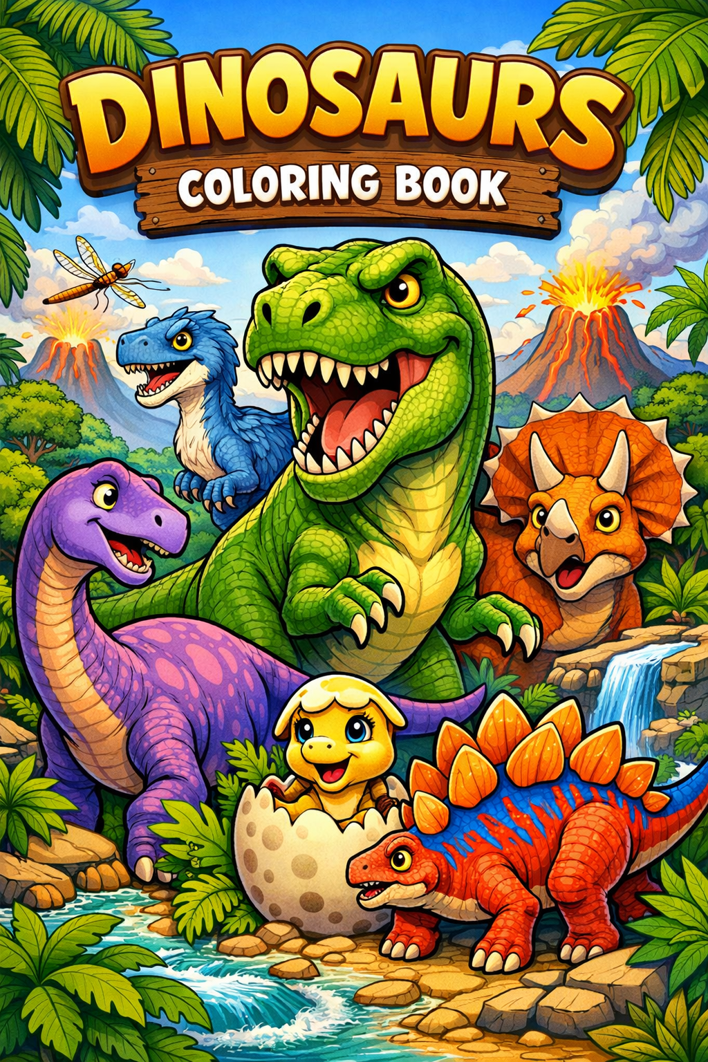 Dinosaurs, coloring ebook, 12 designs, digital printable product, instantly download