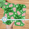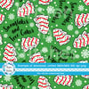 It's Debbie cake season! Frosted Christmas tree snack cakes on green.