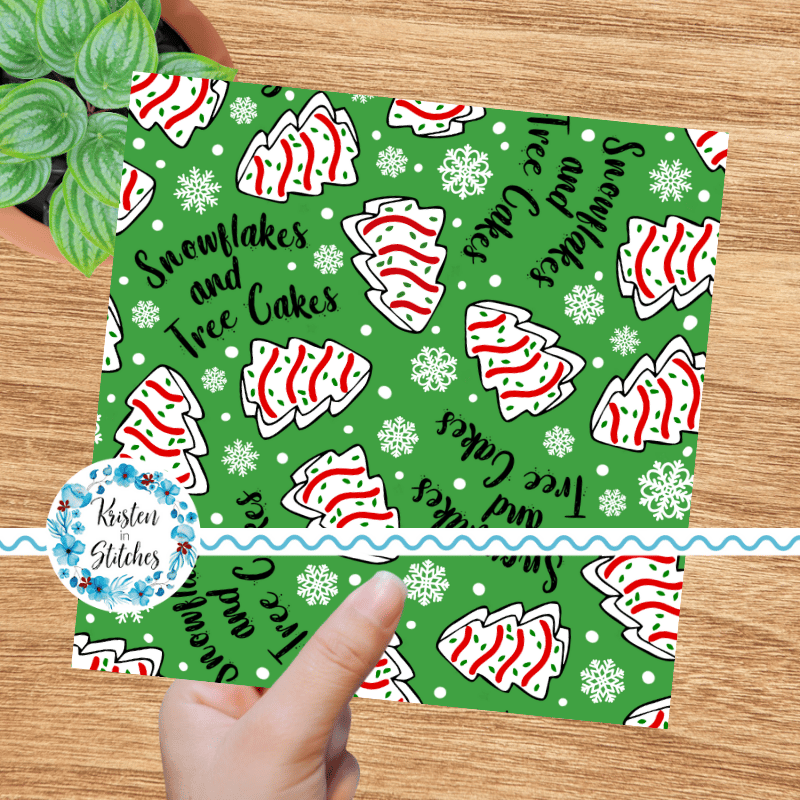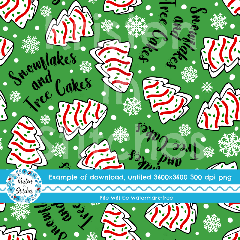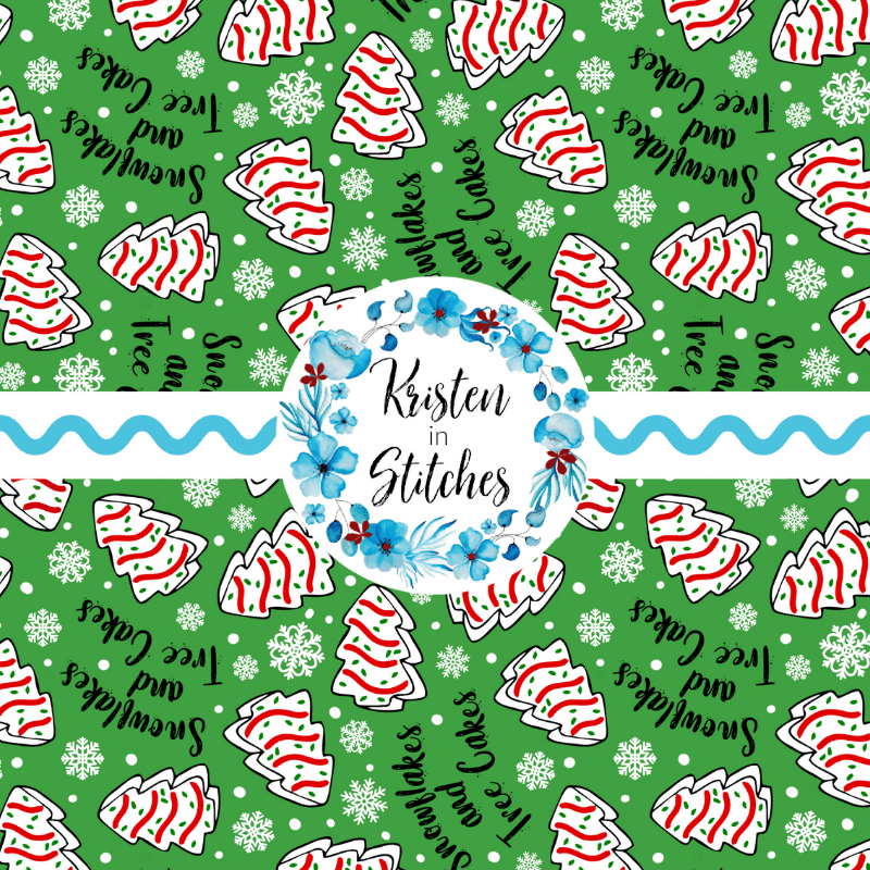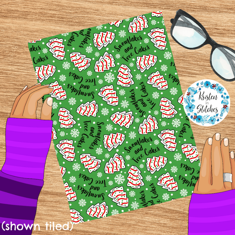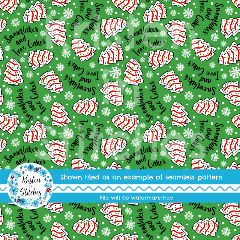 Snowflakes and Tree Cakes Seamless Pattern, Little Debbie Christmas Snacks