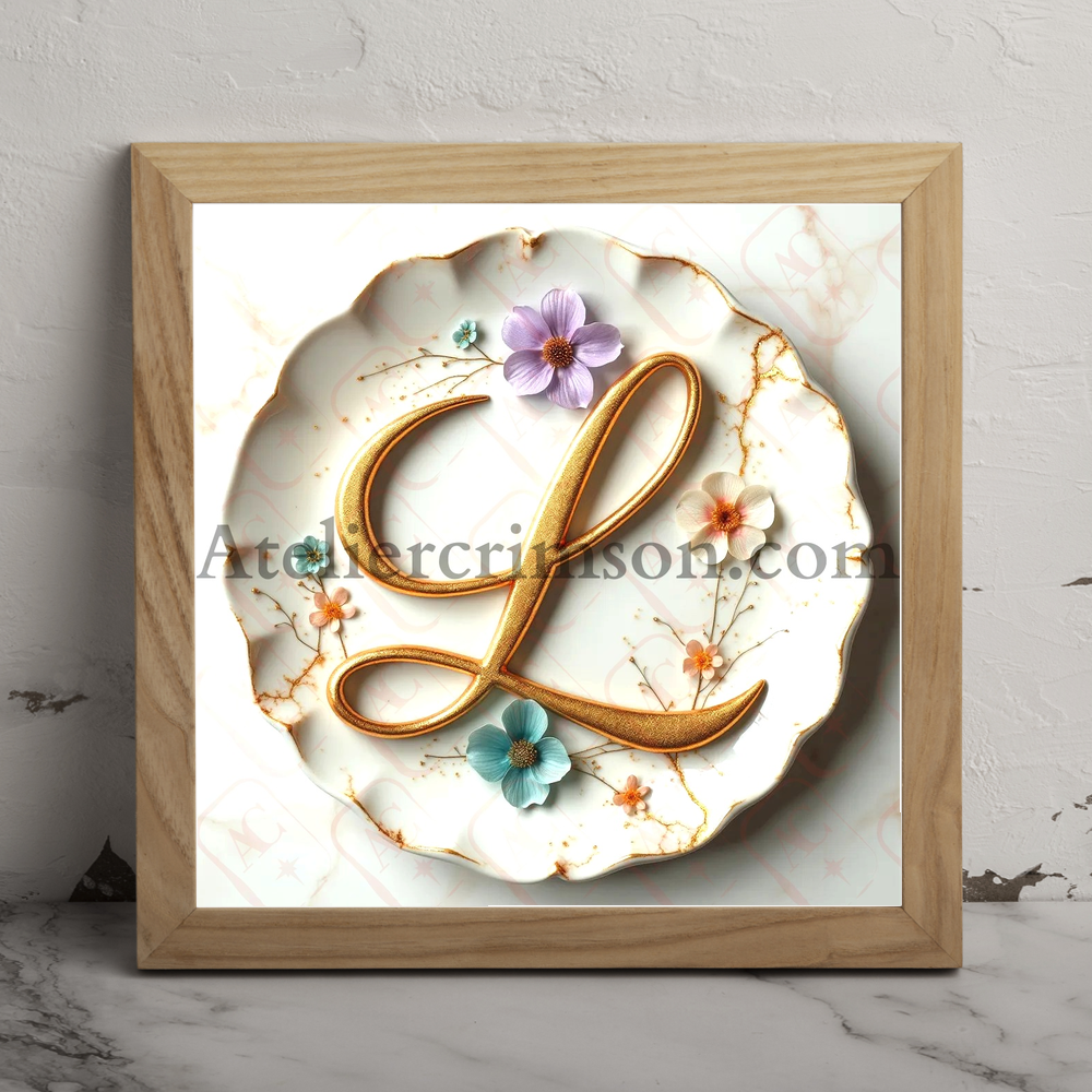 The letter L flowers and procelaine .Download Now this high quality AI-generated image, perfect for adding a touch of tranquility and creativity to any space.