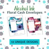 Alcohol Ink Floral Cash Envelopes With Budget Trackers | Floral Cash Envies With Expense Trackers | Cash Stuffing Log