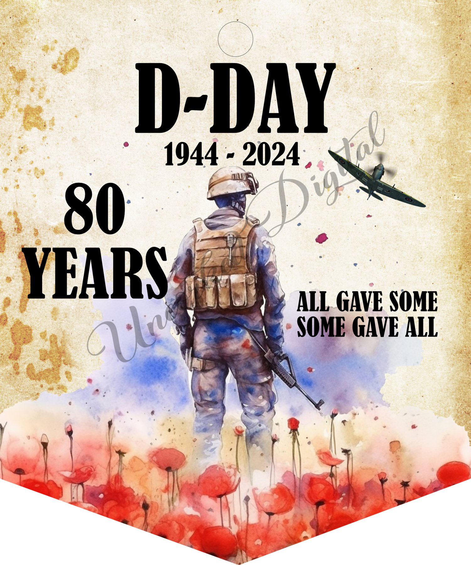 80 years D-Day pennant design to fit the hanging and suction pennants from Woodform Crafts.