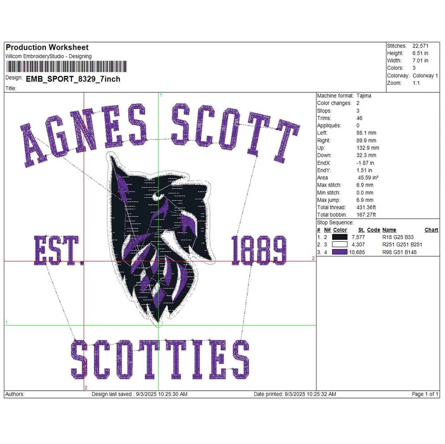 NCAA Agnes Scott Scotties Football Team Est Logo Wordmark Embroidery Designs, Ncaa Embroidery Files, NCAA Agnes Scott College Team Logo Embroidery, Game Day Machine Embroidery Design, Digital Download