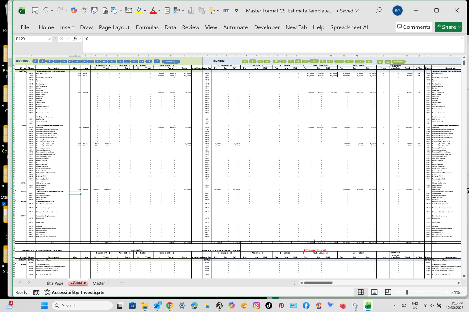 ✔ MasterFormat CSI Estimating Workbook (.xlsm)