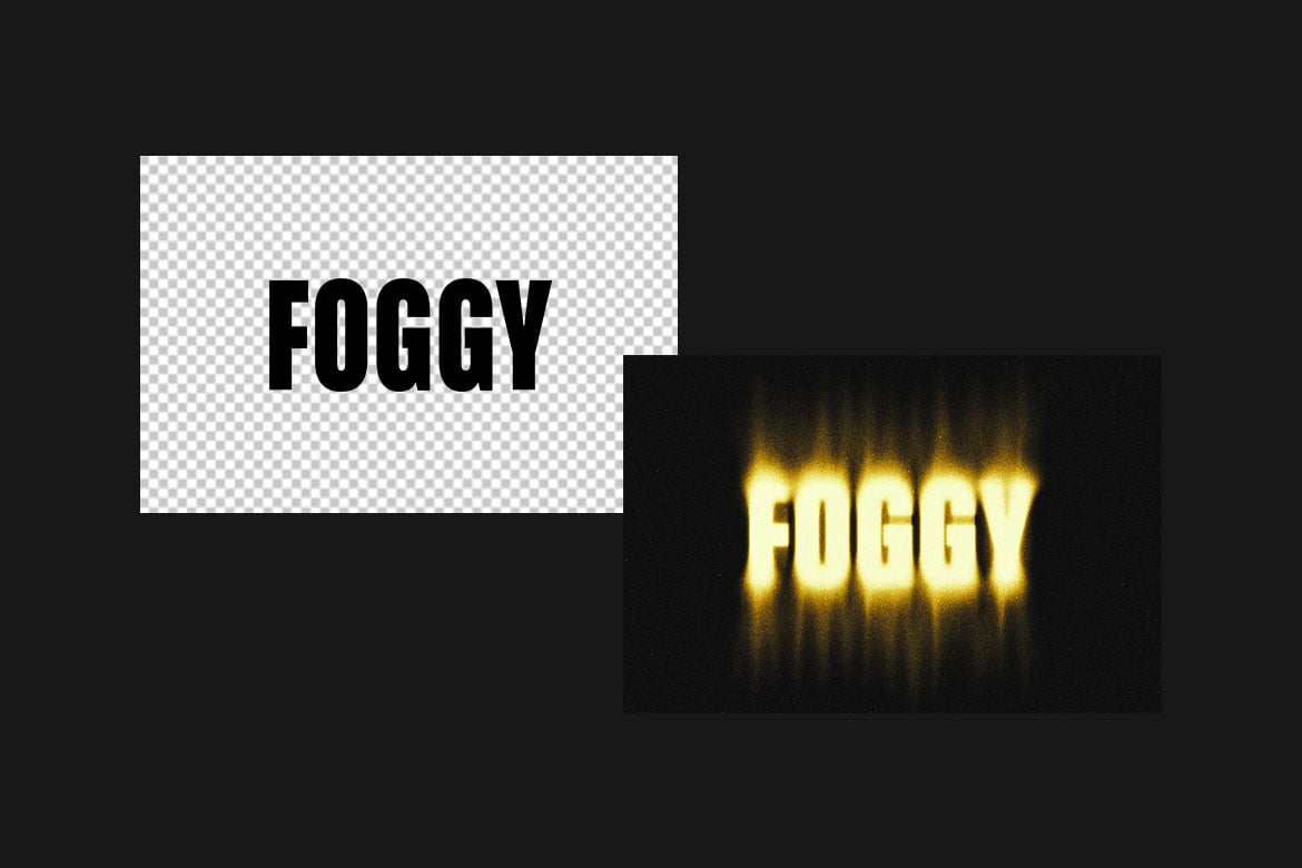 Styled with a dramatic glowing haze effect, creating the impression that the text is emerging through thick mist or smoke. The letters are bold and bright, illuminated in a strong glow that gradually diffuses outward into the dark background.