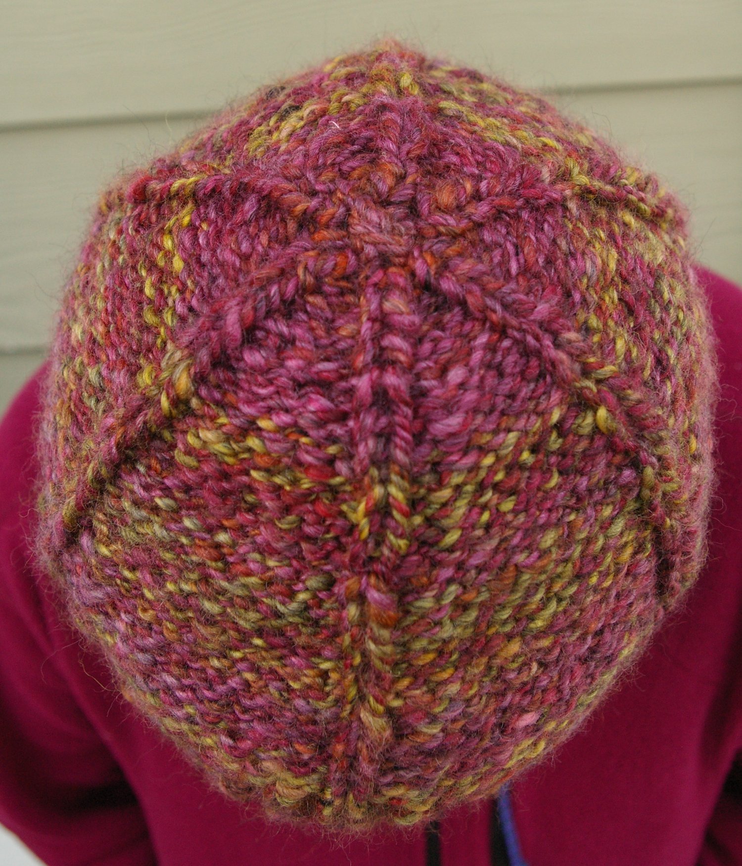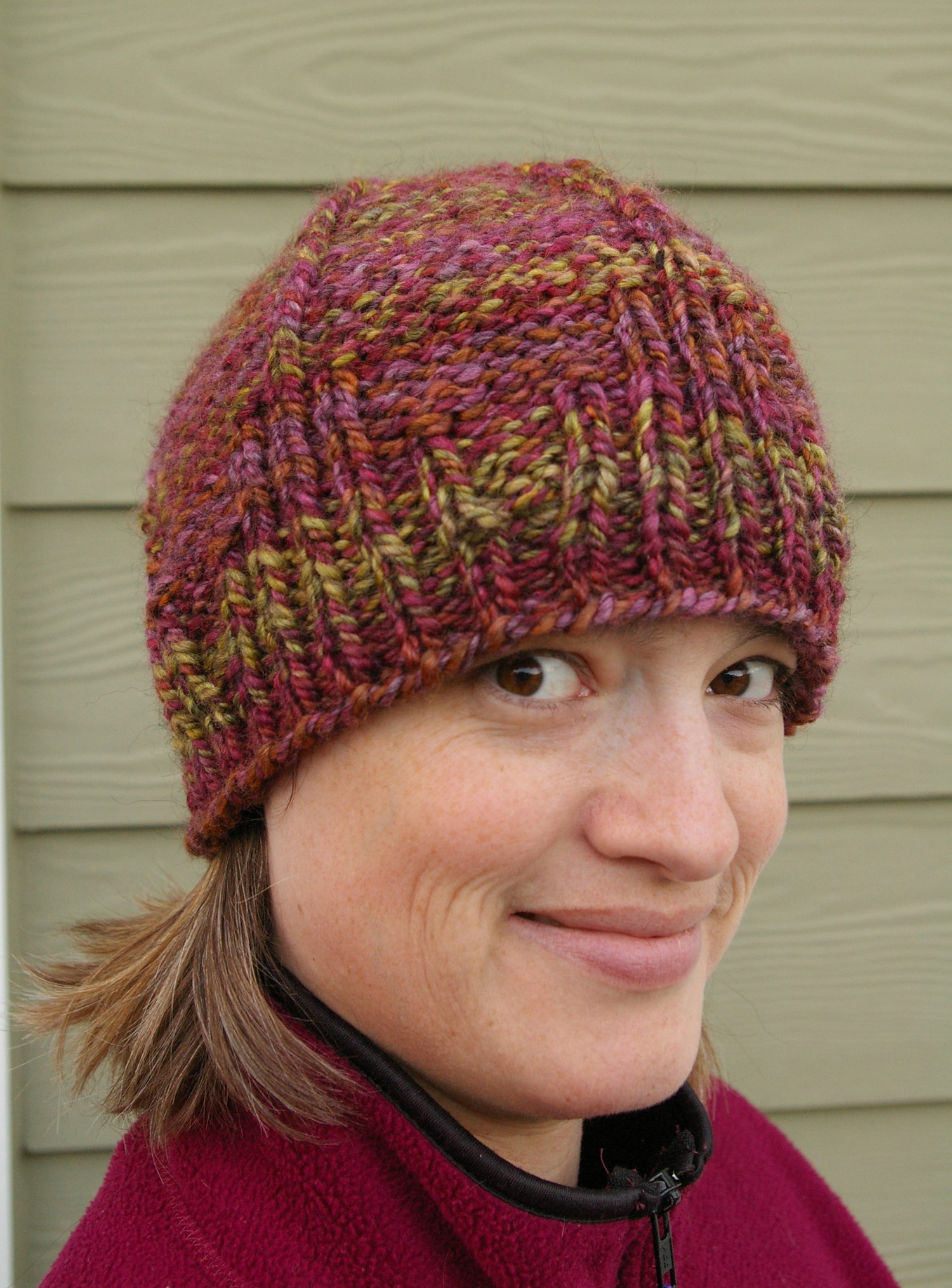 Sometimes yarn tells you what it wants to be, and sometimes it just doesn’t. This yarn, a handspun alpaca/merino/silk blend, was definitely destined for hatdom—but what kind? After much negotiation, what you see is the result!