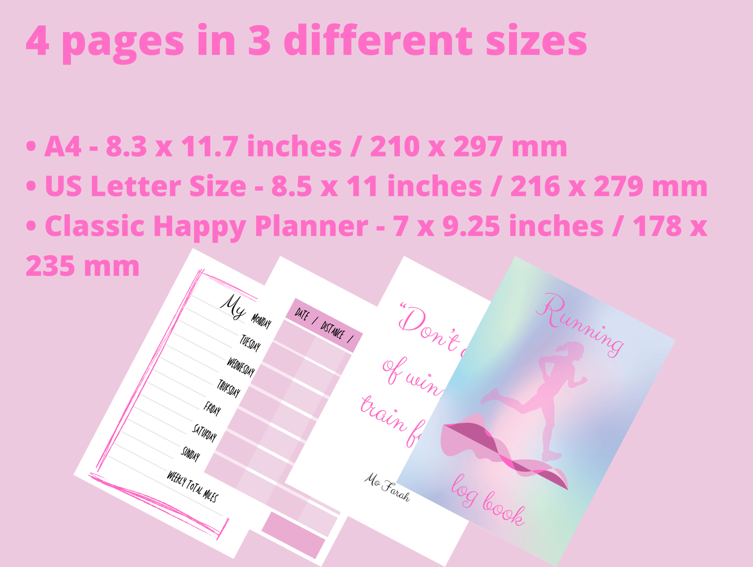 Running Log Book | Printable Marathon Journal | Downloadable Distance and Time Tracker | Fitness Planner | Digital Download Weekly Planner | Pink