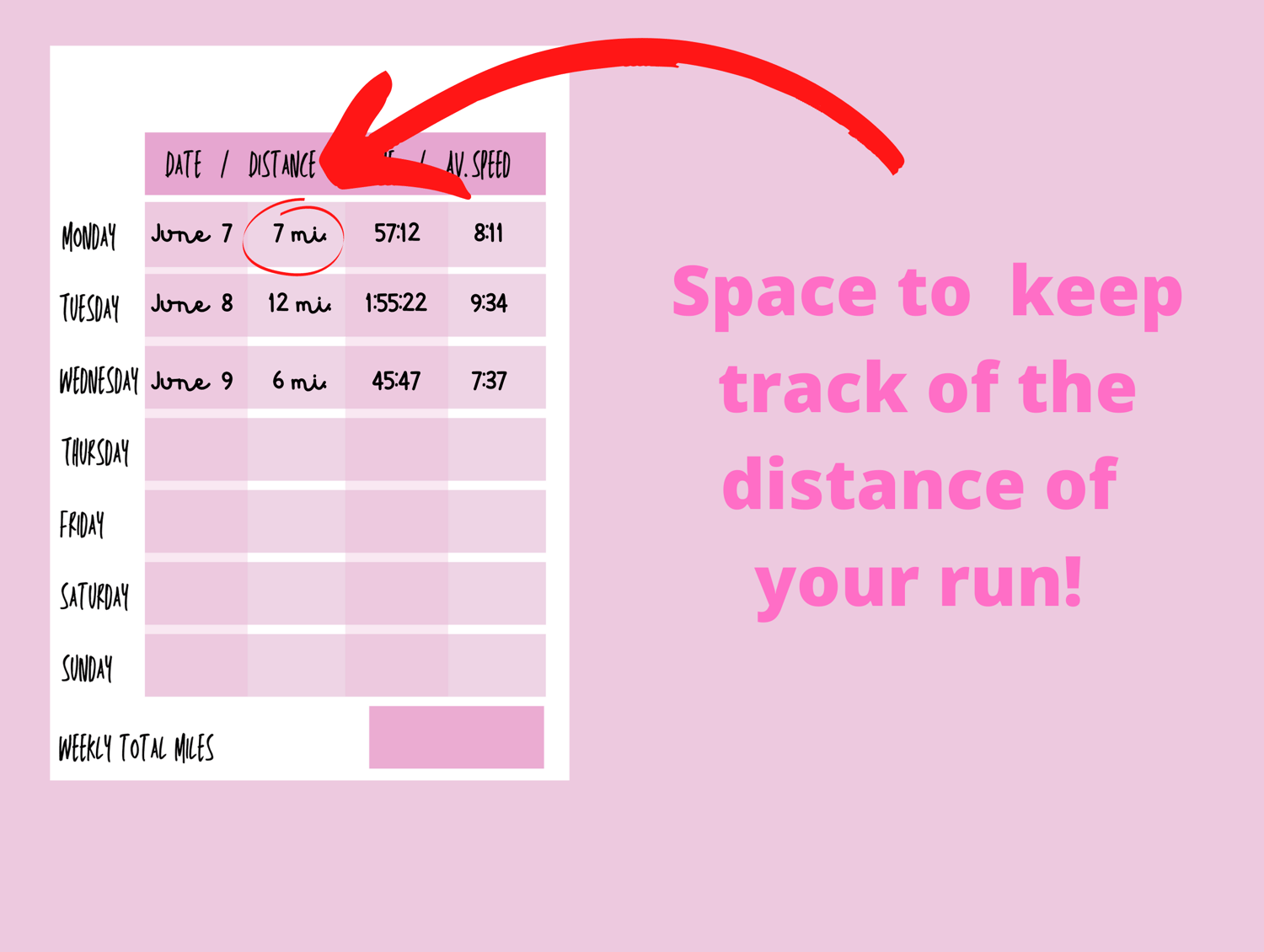 • Weekly running log book
