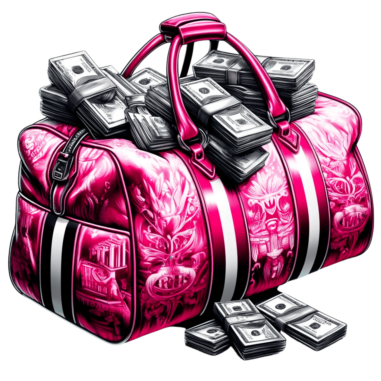 Pink Money Bag PNG | Glam Duffle Bag with Cash Stacks Sublimation Design | Bling Boss Fashion Hustle Graphic | Instant Download