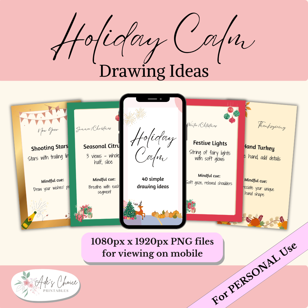 Take a break from the holiday chaos with 40 easy, mindful drawing ideas made just for busy working mums.