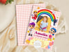 True and the Rainbow Kingdom Birthday Party Invitation, Gingham Pink Birthday Invite True, Rainbow Kingdom True Birthday Party Ideas. Colorful Little Girl Birthday Invites Pink Rainbow