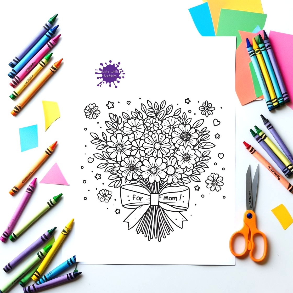 Give Mom a bouquet that lasts forever 🌸 This printable coloring page features a lovely floral design perfect for young artists to personalize and gift with pride.