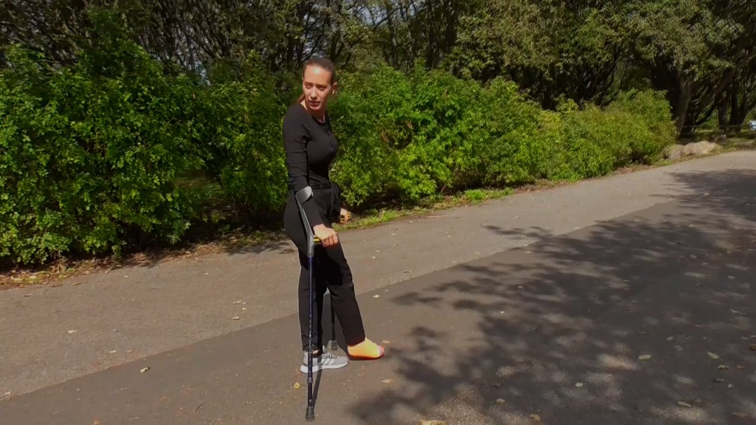 Sunshine is on her way to the park down at the beach right now, her right leg is broken after she got hit by a bicycle last week, now she’s injured and casted in an orange SLC, poor girl. Sunshine thought it would be nice to crutch around here today now that the sun is out shining, although it’s still pretty windy. There’s almost just grass around here before you reach down to the beach, but Sunshine isn’t planning on giving up yet, steady and focused, she’s getting closer and closer to the bench right next to that water. Finally, it’s time for a quick rest after all of the hard work, she puts her casted leg up to rest on one crutch while close ups are being filmed from every angles possibly. Enjoy!