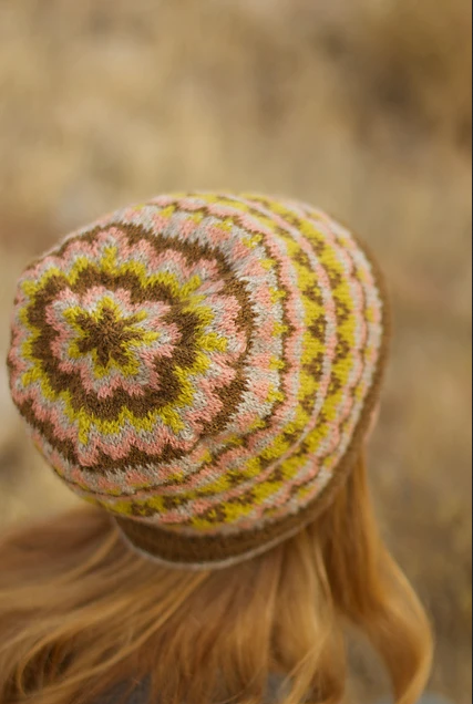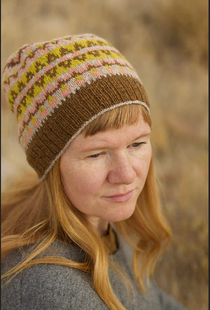 Peavine is an easy to work stranded-knitting pattern in which the end result is all about the interplay of colors and shapes. This slouchy style hat looks great in all sorts of color combos so don’t be afraid to pick some of your favorites and have fun! Peavine is named after the mountain out my back door that I hike on almost everyday. The colors I see out there are very much reflected in the colors I chose for this hat.