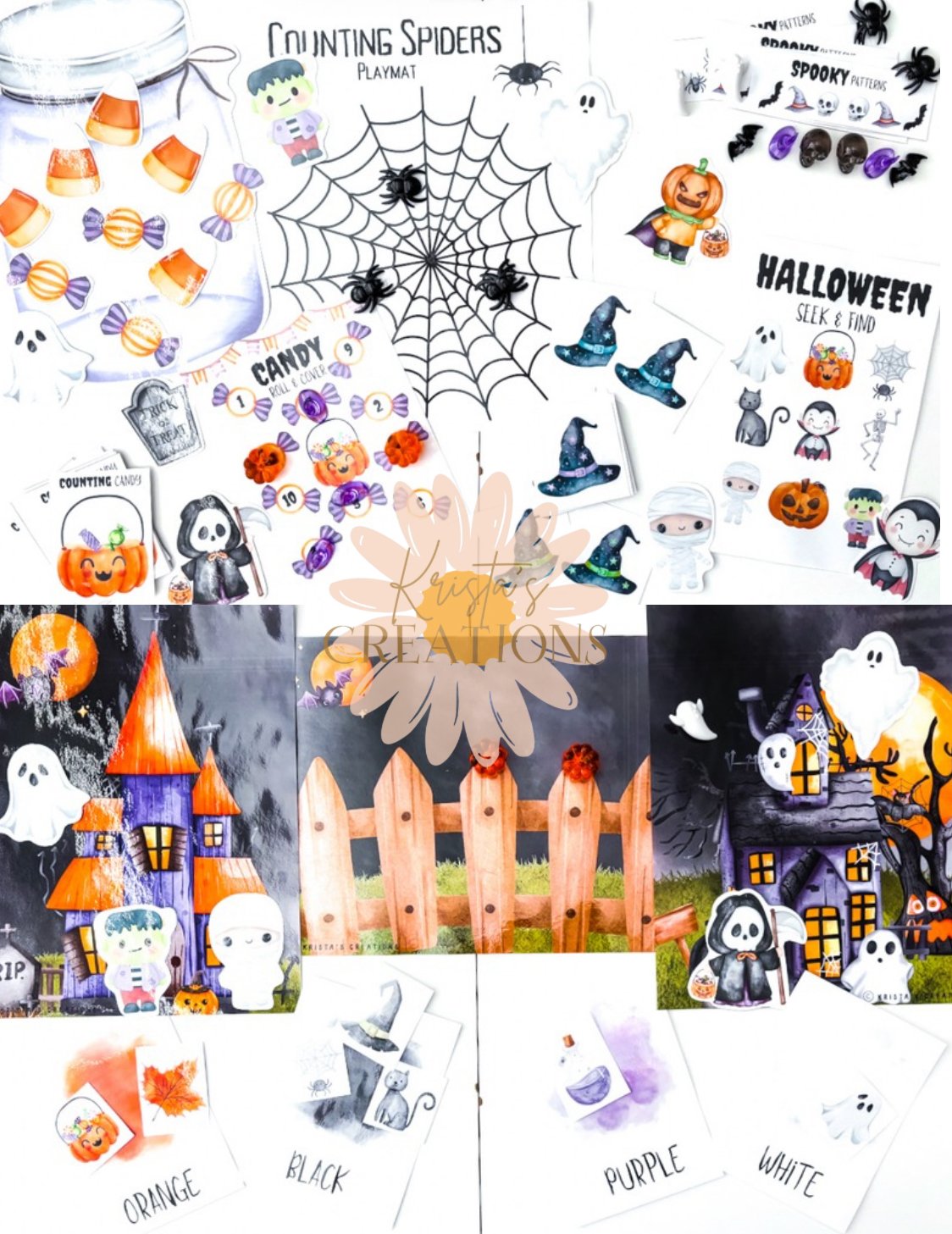 *Halloween Free Play Mats – Create your own spooky scenes with printable characters, props, and backgrounds for imaginative storytelling.