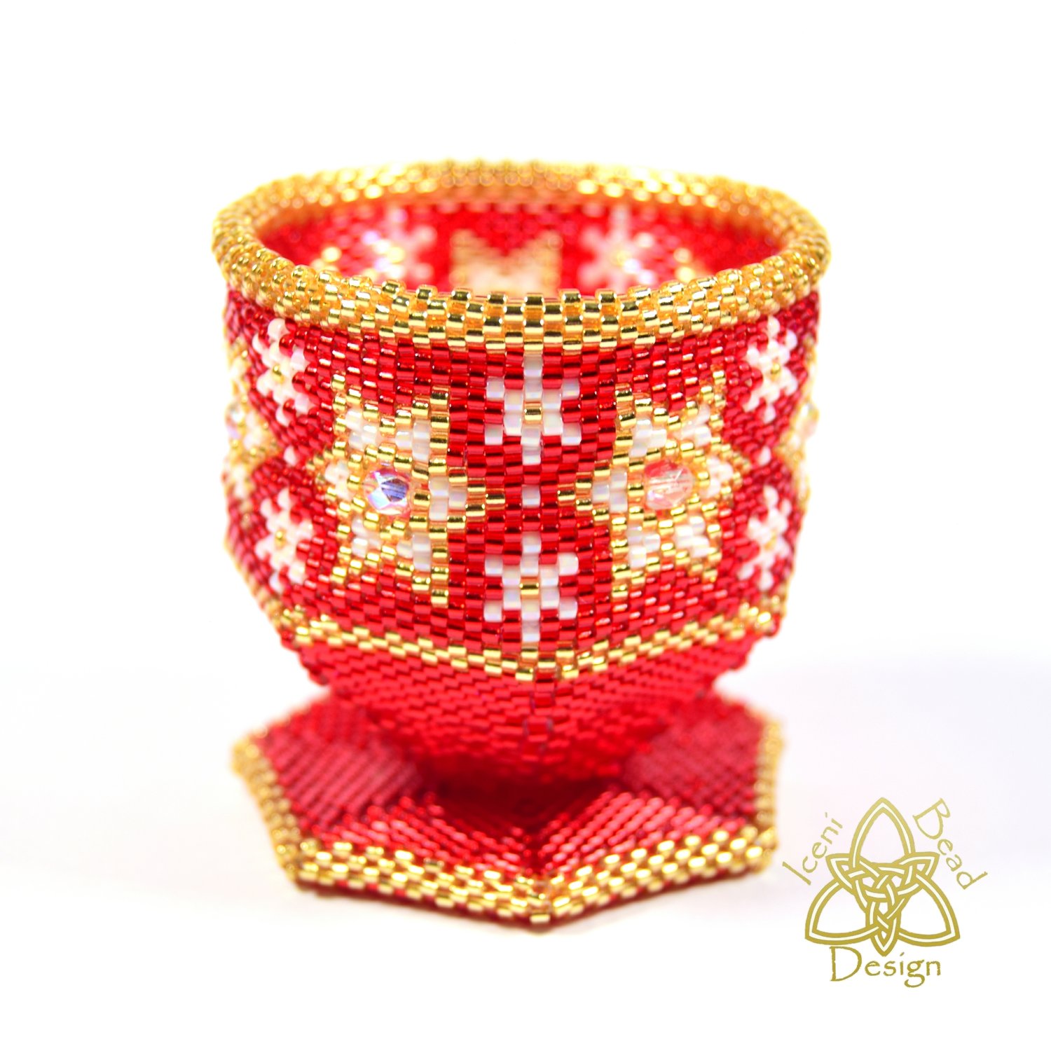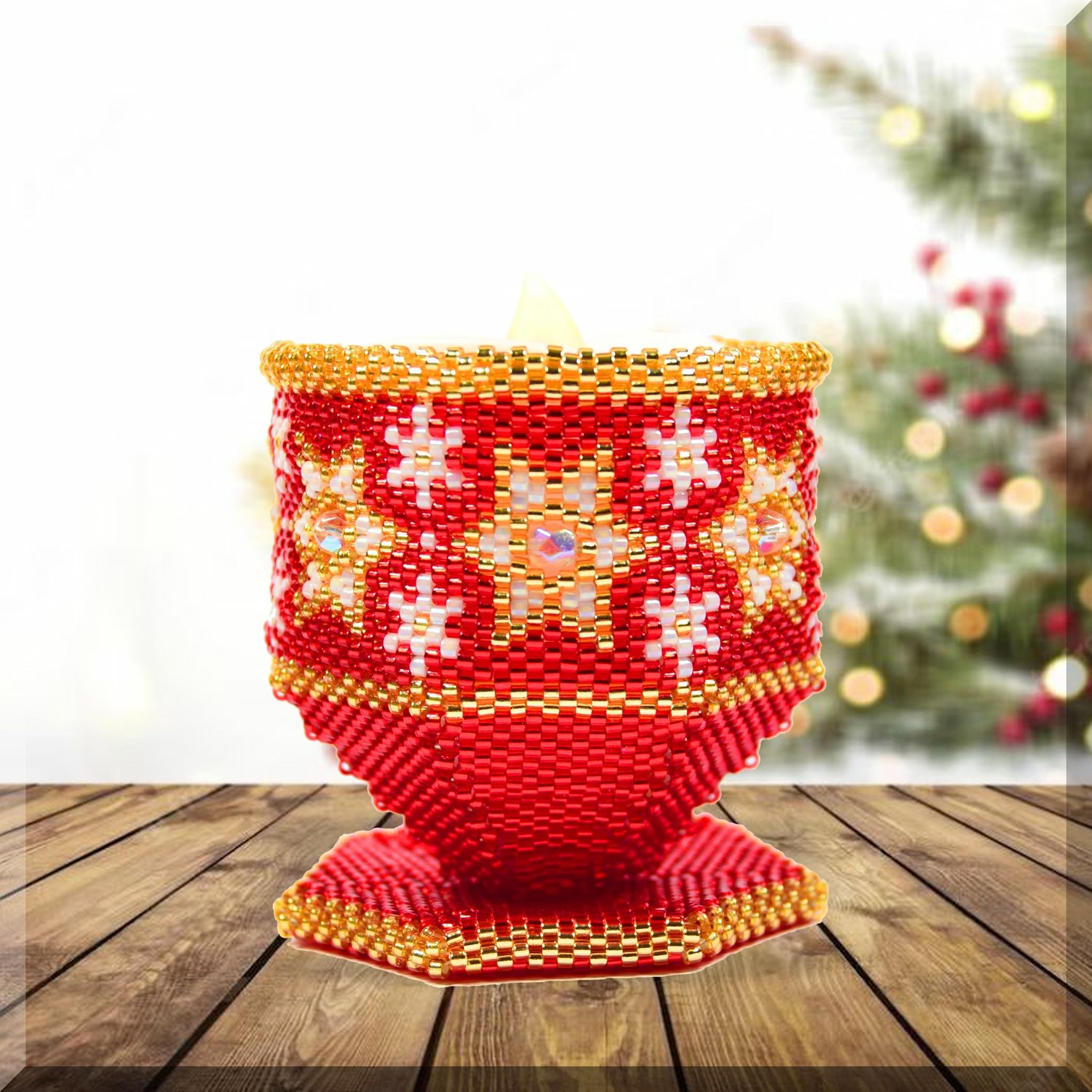There are always stars around at Christmas, and this little beaded cup is no different. Made using peyote stitch, this gorgeous little cup fits the battery operated votive candles easily, or you can use them on their own as decoration in their own right.