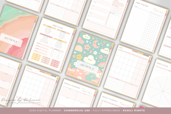 PLR Undated Digital Planner Bundle Canva | 75+ Page Editable Planner Templates | Resell Rights | Etsy Seller Starter Kit