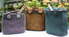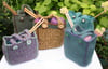 You will need yarns of at least 12-16 ply (50m per 50g ball yarns), but can also knit this bag with multiple strands of finer yarn as shown in the photographed samples.