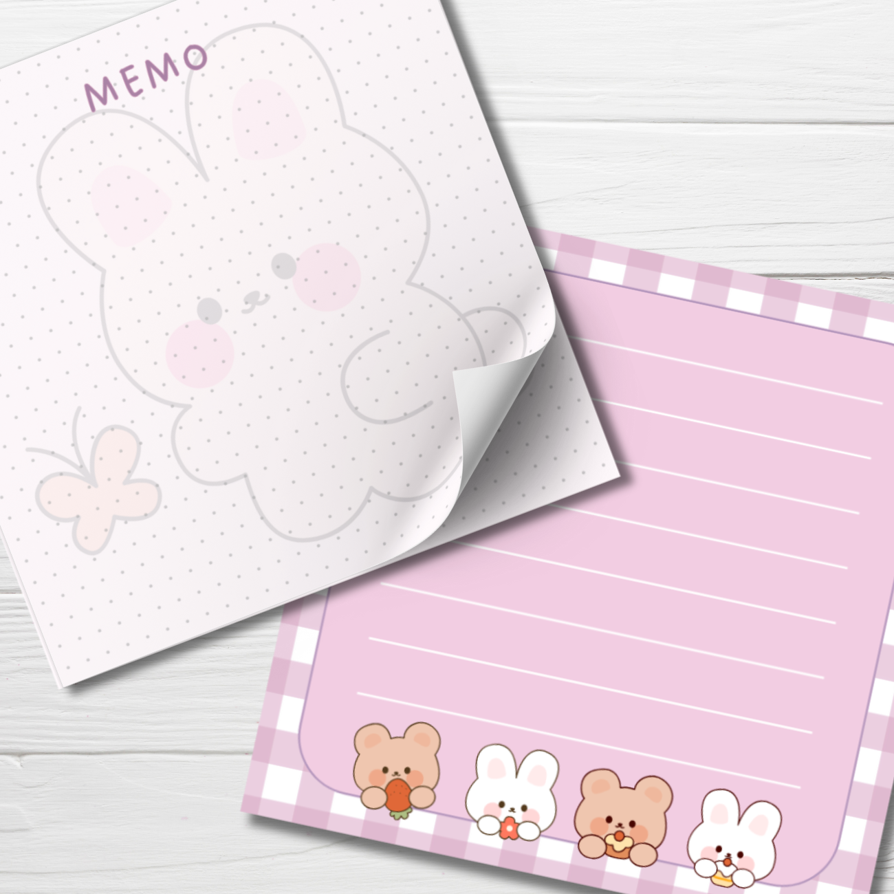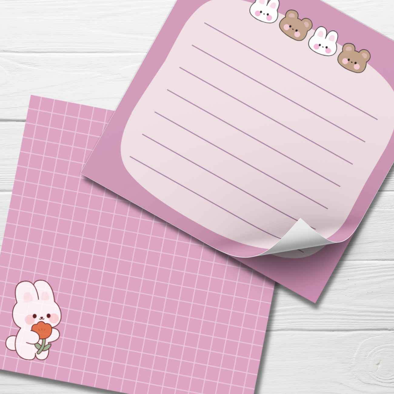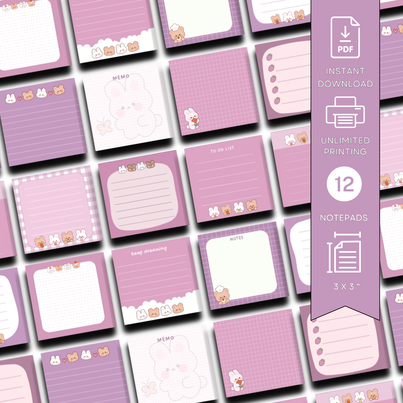 12 Printable Bunny & Bear Memo Pads – Kawaii Animal Sticky Notes – Cute 3x3" Pastel Notepad Set – Digital Download Stationery for Journaling & Planning