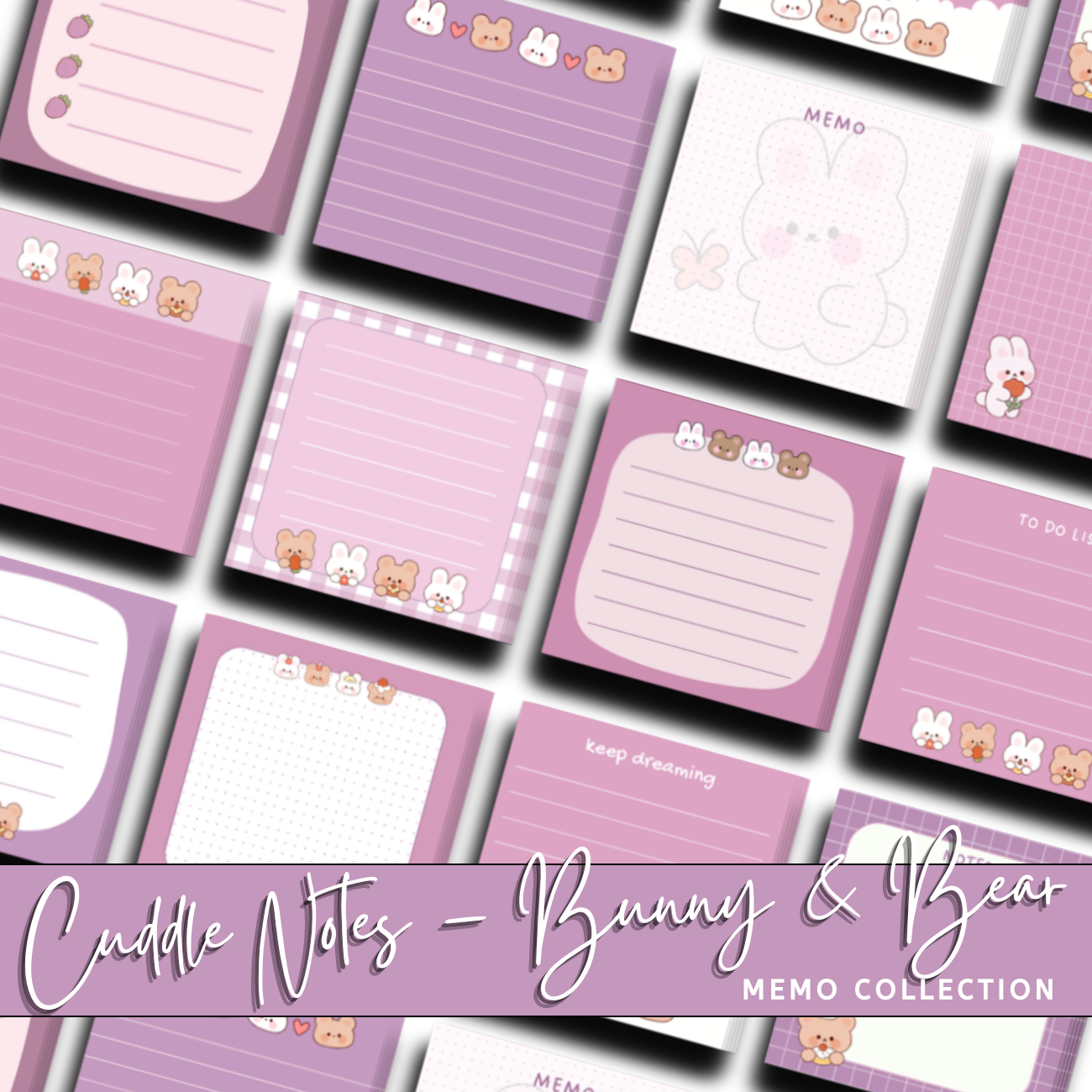 🐻🐰 The Cuddle Notes – Bunny & Bear Memo Collection is a delightful digital set of 12 printable 3x3" memo pads, filled with adorable bunnies, cuddly bears, and soft pastel tones. Perfect for planners, journals, to-do lists, or just leaving a cheerful note ✨