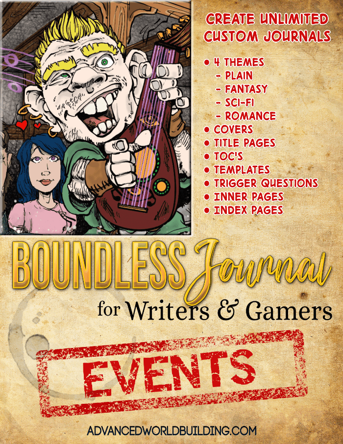 A custom themed, printable journal, is packed with templates and ‘trigger questions’ to help you world build bigger, better, and faster than ever.