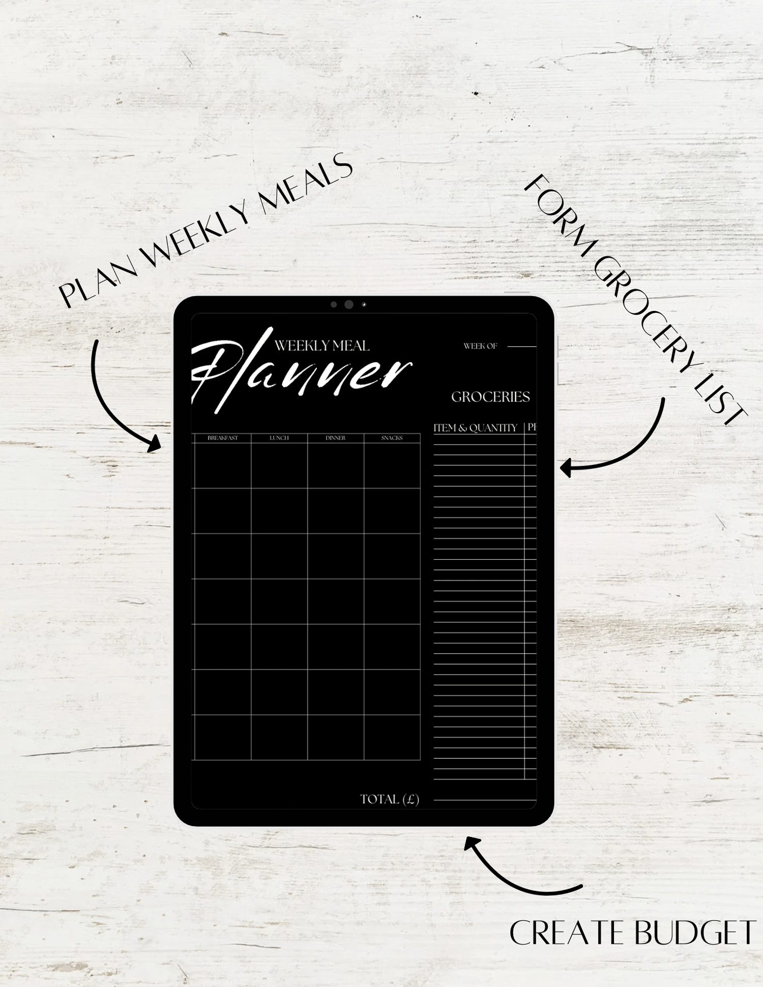 Weekly Meal Planner | Printable & Digital | Grocery List Included | Meal Prep Organizer | Duplicate Pages | Snack Planner