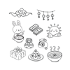 A set of 17 hand-drawn Seollal Korean traditional line art clipart illustrations!