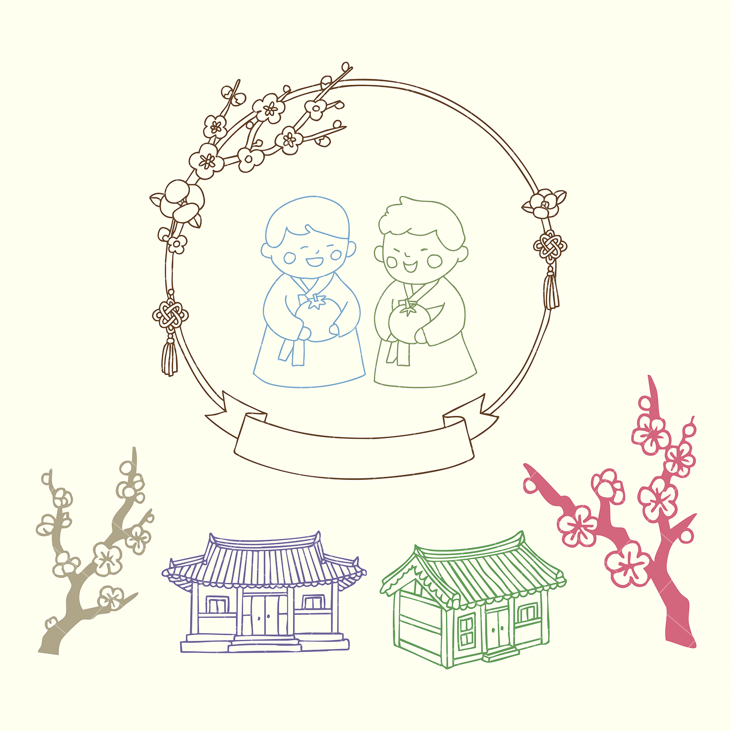 Ideal for Seollal-themed greeting cards, festive holiday decorations, traditional packaging, Korean New Year stationery, cultural event flyers, stickers, prints, digital projects, scrapbooking, and creative tags for planners or journals. Perfect for designers, crafters, and anyone who loves Korean culture and traditions!