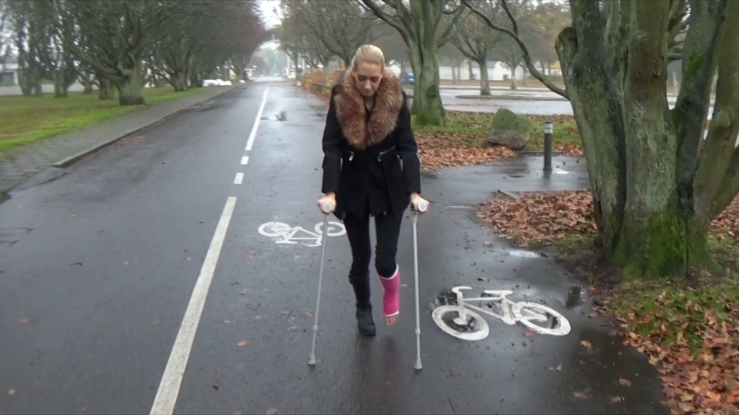 This is Sunshine first clip as our model and today she crutch around with a pink SLC on her left leg