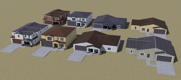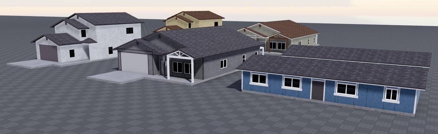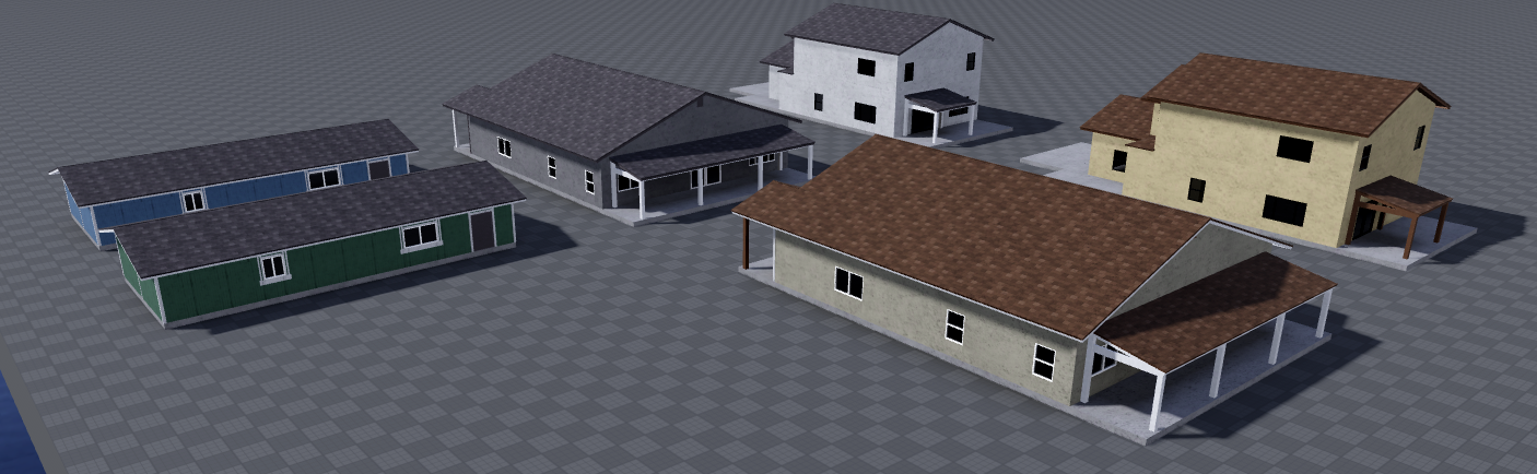 This includes 3 older homes from Green Valley. Each older home comes with an open interior and garage, everything is enterable. All 3 have a second variant which is a different color.