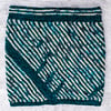 This cowl is knit flat on the bias and Kitchener stitched together. Stitches are then picked up from each end and edging is worked in the round.