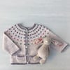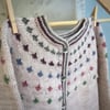 Colourwork is worked on WS rows for only 4-5 rows in total. Because of this limited amount of purled colourwork, I recommended working the cardigan flat. Alternatively, work in the round and steek before finishing.