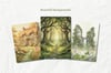Colour palette: Rich emerald greens, antique golds, warm creams, and vintage sepia tones with Celtic-inspired design details throughout.