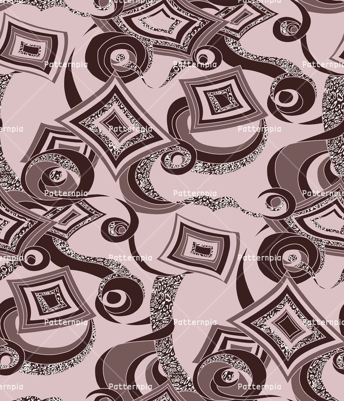 Contemporary fluid geometric swirls and nested diamonds in rose taupe and chocolate.