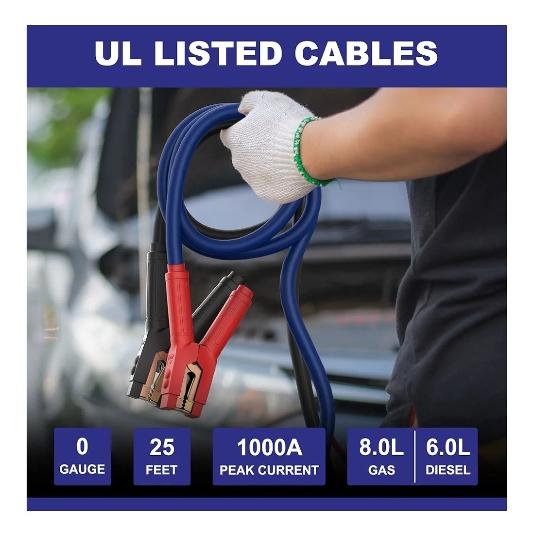 Heavy Duty Jumper Cables, 0 Gauge 25 Feet 1000Amp Booster Cables, UL Listed Cables for 12V & 24V Cars, SUVs and Trucks, Jumper Cables Kit with Carry Bag, Gloves, Brushes (0 Gauge 25 Feet)…Product details