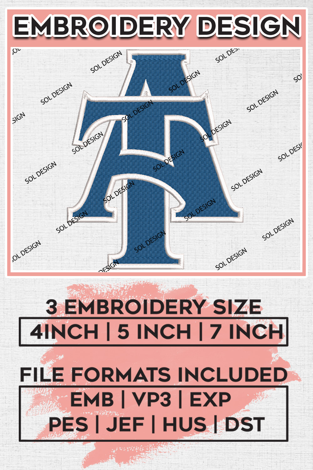 NCAA Aggies College Football Team AT Logo Embroidery Designs, Ncaa Embroidery Files, North Carolina A&T Aggies NCAA Team Logo Embroidery, Game Day Machine Embroidery Design, Digital Download